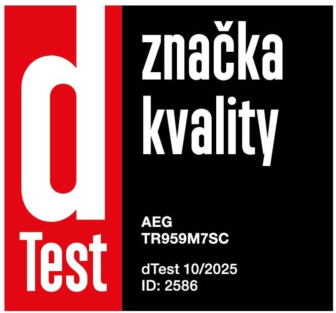 Sušička AEG TR959M7SC řady 9000 AbsoluteCare Plus se může pochlubit označením dTest.