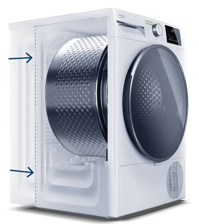 Použité tepelné čerpadlo umožňuje efektivní sušení při nižší teplotě. To se odrazí nejen na kvalitě oblečení, ale i na nižší spotřebě energie.