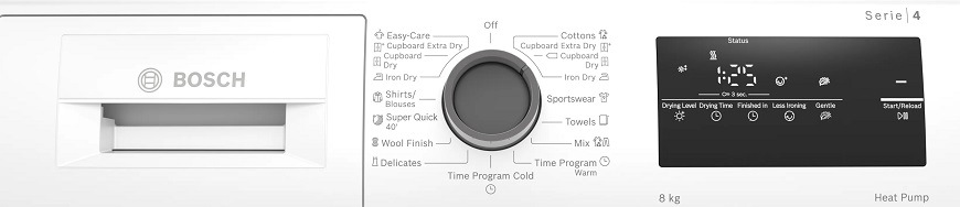 Různé oblečení si žádá různý program. Proto má sušička Bosch na výběr velkou škálu programů. Např. pro peří, vlnu, ručníky, sportovní a fitness oblečení. Vašemu oblečení tak bude poskytnuta ta nejlepší péče.