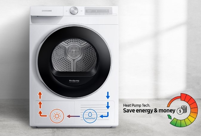 V moderní domácnosti je neskladný sušák na vyprané prádlo minulostí. Pořiďte si sušičku Samsung a ušetřete svůj čas, životní prostředí, spotřebu energie i svou peněženku. Sušička je osazena technologií tepelného čerpadla, které zaručuje energetickou efektivitu a šetrný způsob sušení různých tkanin. Vzduch ohřívá pomocí „chladiva“ a recyklace teplého vzduchu zajišťuje ještě větší úsporu energie.
