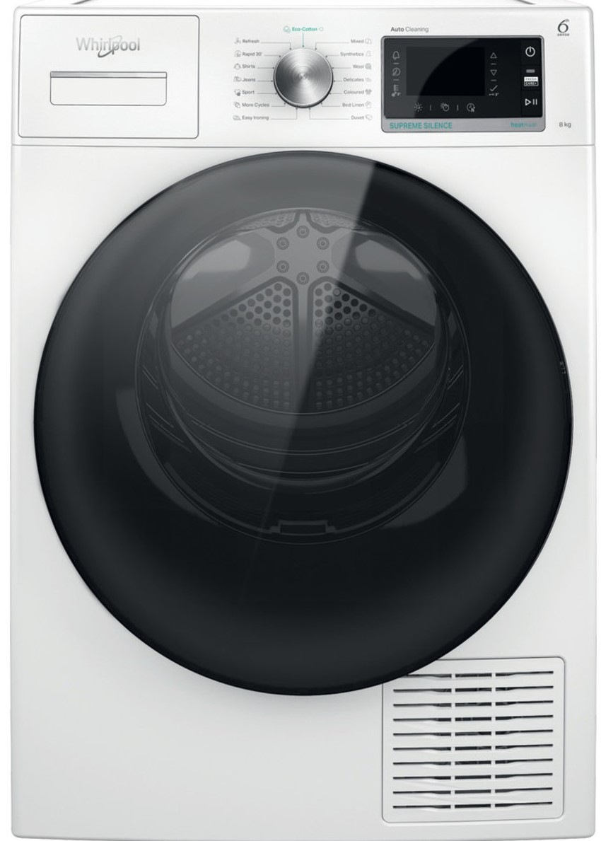 Pokud hledáte sušičku, která je úsporná, perfektně odvede svou práci a zároveň vás nebude obtěžovat hlučností, pak se seznamte s produktem Whirlpool Supreme Silence. Sušička W7 D84WB EE je s hlučností 59 dB nejtišší na trhu*. Zároveň disponuje inteligentní technologií 6. SMYSL, která automaticky nastaví parametry sušení s ohledem na množství, teplotu a vlhkost náplně. Úspornost sušičky potvrzuje její zařazení do energetické třídy C, kapacitně pojme až 8 kg prádla a nabízí 21 různých cyklů sušení. Technologie FreshCare+ se postará o svěžest prádla i v případě, že je v bubnu sušičky zapomenete. Sušička Whirlpool W7 D84WB EE Supreme Silence je vybavena inovativním invertorovým motorem, který má velký podíl na nízké hlučnosti, ale i úspornosti a efektivnosti sušení. K energeticky úspornému sušení rovněž přispívá technologie tepelného čerpadla. Potěšit vás může i samočisticí filtr kondenzátoru, o který nemusíte nijak pečovat. Účinný filtrační systém DuoFilter udržuje sušičku čistou a přispívá k jejímu perfektnímu výkonu a spolehlivosti.