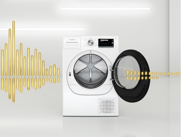 * Porovnání hluku sušení deklarovaného výrobci na energetickém štítku. Odkazuje na sušičku Whirlpool Supreme Silence 8 kg a 9 kg s 59dbA (prosinec 2020).