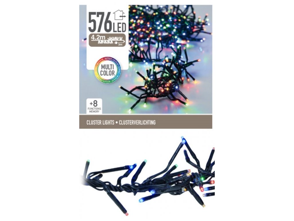 Světelný LED řetěz / 576 LED / 4,2 m / 8 funkcí / venkovní i vnitřní / vícebarevná
