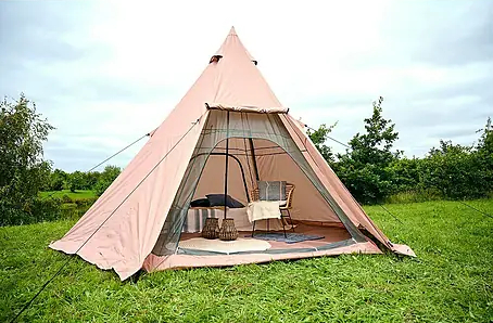 Teepee stan je navržený pro venkovní použití a snadno se staví i skládá. Je lehký, dobře přenosný a díky elegantní béžové barvě se hodí do každého přírodního prostředí. Pokud hledáte stan, který spojuje styl, prostornost a funkčnost, je tento model ideální volbou.