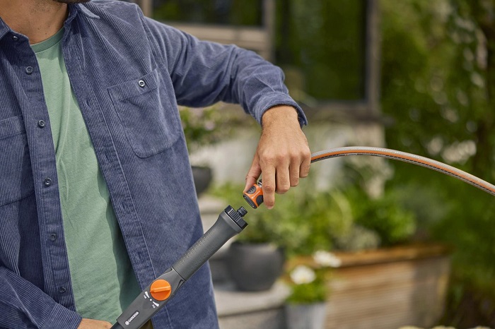 Po připojení k zahradní hadici lze přívod vody plynule regulovat a vypínat jediným pohybem ruky. Díky tomu je regulace množství vody hračka a není nutné chodit k vodovodnímu kohoutku.