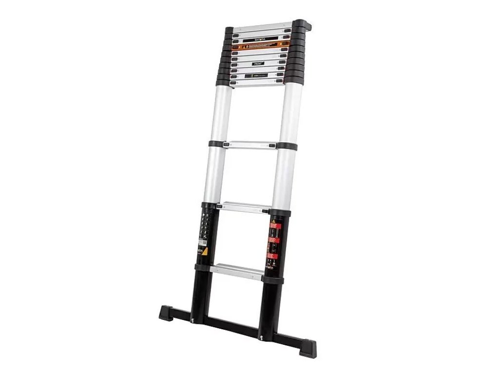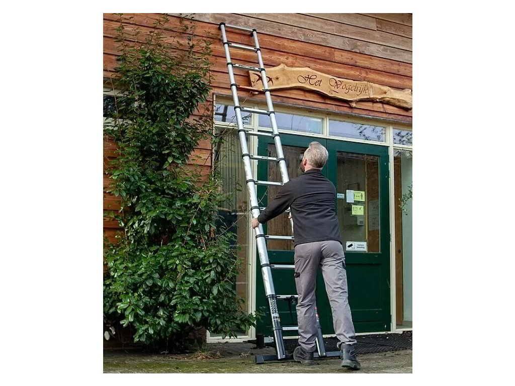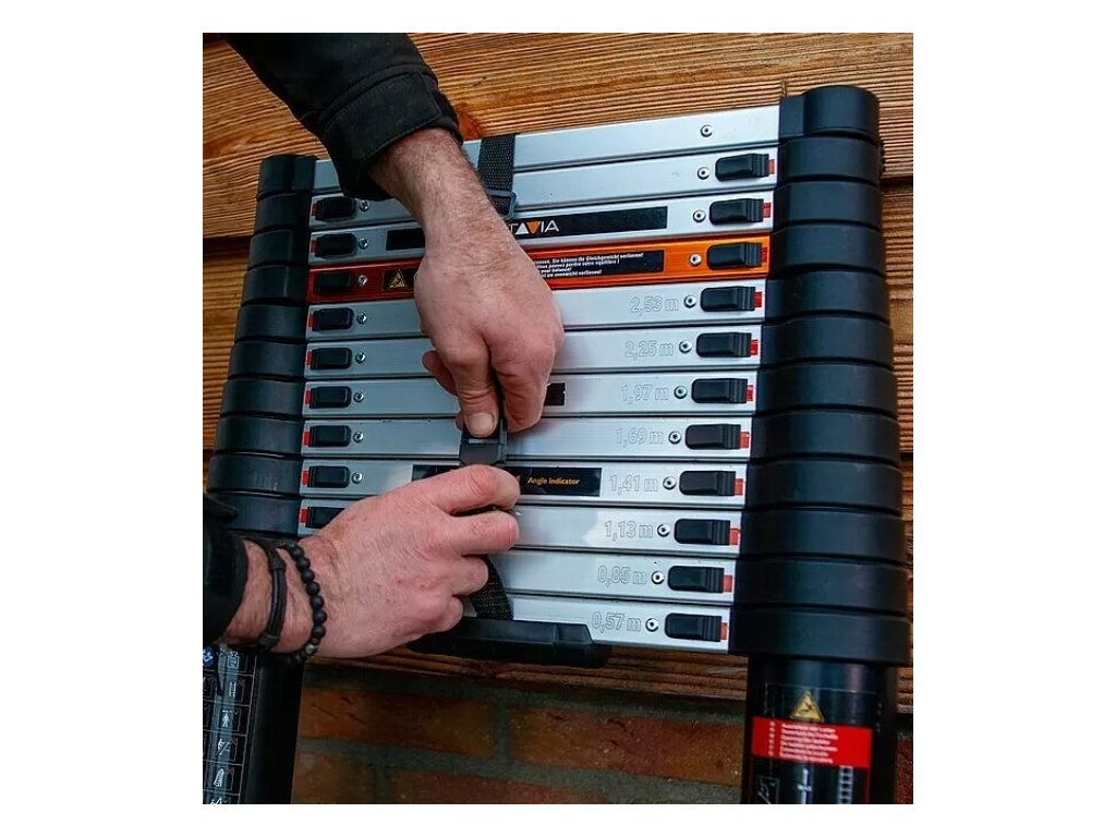 Profesionální teleskopický žebřík o délce 3,81 m má 12 příček. Každá příčka má svůj vlastní zámek. To znamená, že tento hliníkový teleskopický žebřík můžete používat, i když není zcela vysunutý, protože příčku můžete v určité výšce uzamknout. Pokud chcete profesionální teleskopický žebřík zavřít, uvolněte zámek na poslední příčce a příčky budou pomalu a kontrolovaně padat dolů.