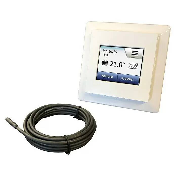 Smart Home E-Power Thermostat je digitální ovládací zařízení pro elektrické podlahové vytápění. Je vybaven jak dálkovým čidlem, tak integrovaným čidlem pokojové teploty. Termostat se programuje pohodlně a intuitivně pomocí podsvíceného dotykového displeje. Alternativně jej lze také zcela ovládat prostřednictvím aplikace ve vašem smartphonu, pro kterou je integrován do domácí WiFi sítě. Kromě rozsáhlého týdenního programování obsahuje systém funkci protimrazové ochrany a prázdninový režim. Díky svému modernímu lineárnímu designu se termostat harmonicky hodí do většiny domácností. Elegantní zapuštěná instalace je stejně možná jako přisazená instalace do vhodné krabice.