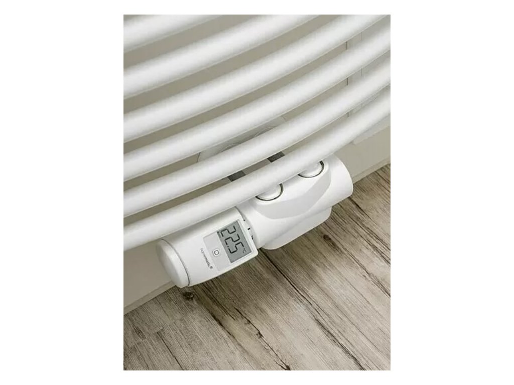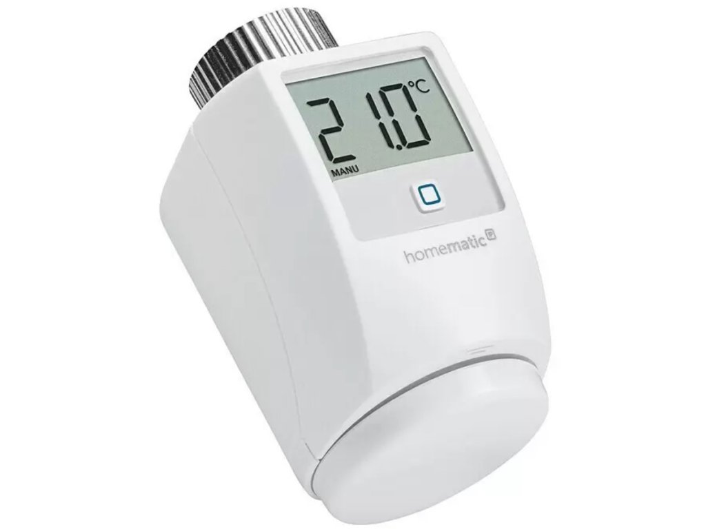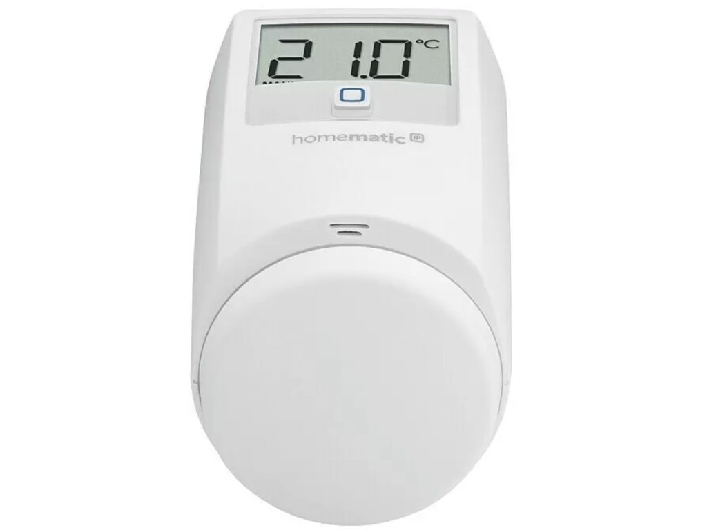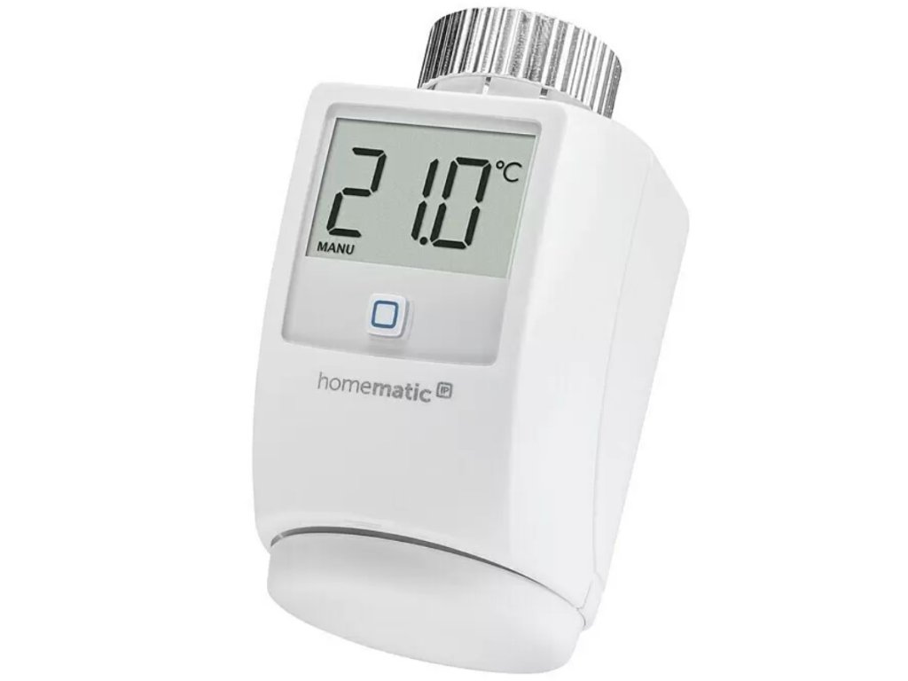 Bezdrátová programovatelná termostatická hlavice Homematic IP pro regulaci vytápění a úsporu energie. Hlavice je vybavena 1,6" podsvíceným LED displejem a napájena dvěma AA bateriemi. Použitím Homematic IP je možné dosáhnout okamžité úspory energie a snížit výdaje až o 30 %. Zařízení lze snadno přidat do systému chytré domácnosti (pomocí centrální jednotky) a nechybí ani podpora hlasového ovládání Google Assistant a Amazon Alexa. V případě nevyužití chytré domácnosti funguje hlavice autonomně.