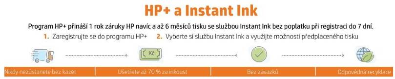 Podmínkou je registrace do HP+ při instalaci tiskárny a registrace do HP Instant Ink do 7 dní od instalace tiskárny.