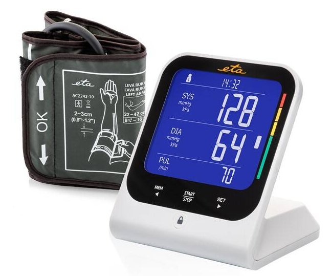 Praktický tlakoměr na paži ETA SMART 4297 90000 disponuje funkcí tlakoměru a pulsoměru a je vybaven inovativní nastavitelnou manžetou o rozměru 22–42 cm pro jednoduché a pohodlné připnutí. Tlakoměr ETA nabízí plně automatické měření, funkci automatického vypnutí i možnost propojení s unikátní MedM BP aplikací, která umožní sledování vašich naměřených hodnot přímo v chytrém telefonu. Naměřené hodnoty vašeho tlaku budete mít vždy pod kontrolou s pomocí chytrých technologií!