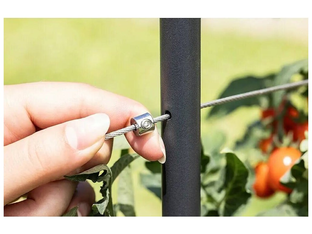 Treláž Windhager je promyšlená opora, která zaujme nejen svým diskrétním vzhledem díky lankům vyrobených z ušlechtilé oceli, ale také vysoce kvalitním zpracováním. Je vhodná pro použití na záhonech a podporuje růst popínavých rostlin, jako je hrách, fazole čí mnoho dalšího. Zejména na vyvýšených záhonech nebo zeleninových záhonech zajistí stabilní oporu, aby vaše rostliny mohly růst do velké výšky. Díky odolným a robustním kovovým trubkám, které jsou opatřeny dvojitou vrstvou, je tato treláž obzvláště odolná vůči povětrnostním vlivům a zaručí dlouhou životnost.