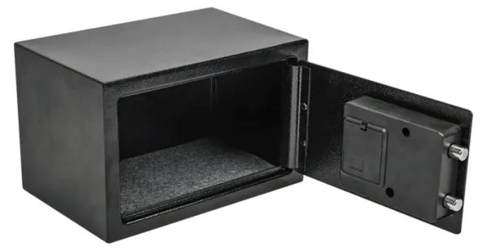 Trezor Security Box 65 Vám slouží k bezpečné úschově dokumentů či jiných cenností, které spolehlivě chrání před neoprávněným přístupem či odcizením. Nabízí ochranu proti vloupání mechanickými nástroji, jako jsou šroubováky, kleště a jiné. Pomocí elektronické číselné klávesnice na baterie si lze nastavit osobní přístupový kód a to v kombinaci 3-8 čísel. Nouzový klíč umožní otevřít trezor v případě zapomenutí či ztráty kódu, ale také v případě vybitých baterií. Praktická LED dioda v přední části upozorní na stav trezoru – zelená společně se zvukovým signálem bude indikovat úspěšně zadaného kódu, červená naopak upozorní na vybité baterie. Otočením kličky ve směru hodinových ručiček pak jednoduše otevřete dvířka. Trezor má robustní kryt vyrobený z houževnatého ocelového plechu v černé barvě a lze jej připevnit skrze stávající 8 mm otvory na spodní či zadní straně k dostatečně těžkému nábytku, ke stěně či ho můžete snadno ukotvit do podlahy.