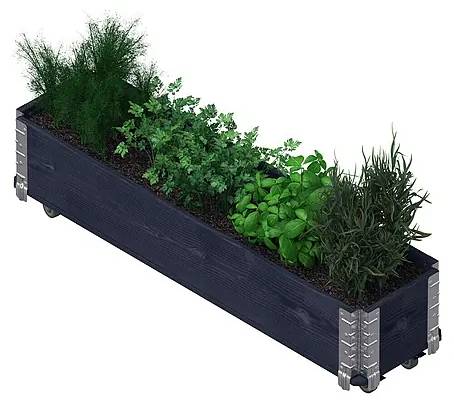 Truhlík na bylinky s kolečky Upyard / 120 x 30 x 19,5 cm / černá