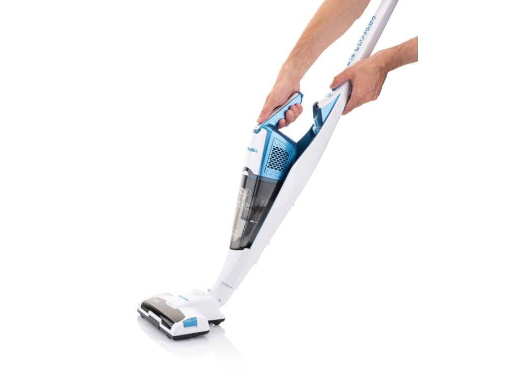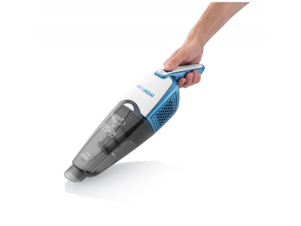 - Tyčový bezsáčkový vysavač Hyundai VC914 / 2 v 1 / 14,4 V Li-Ion / HEPA filtr / 75 dB / 0,5 l / bílá/modrá