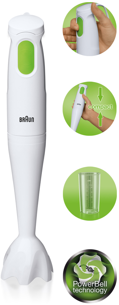Odnímatelná mixovací noha je vyrobena z kvalitního plastu a lze ji jednoduše mýt v myčce. Mixér se velmi snadno skladuje a jeho kompaktní rozměry se hodí do každé kuchyně. Barevné provedení bílá/zelená přináší svěží moderní vzhled.