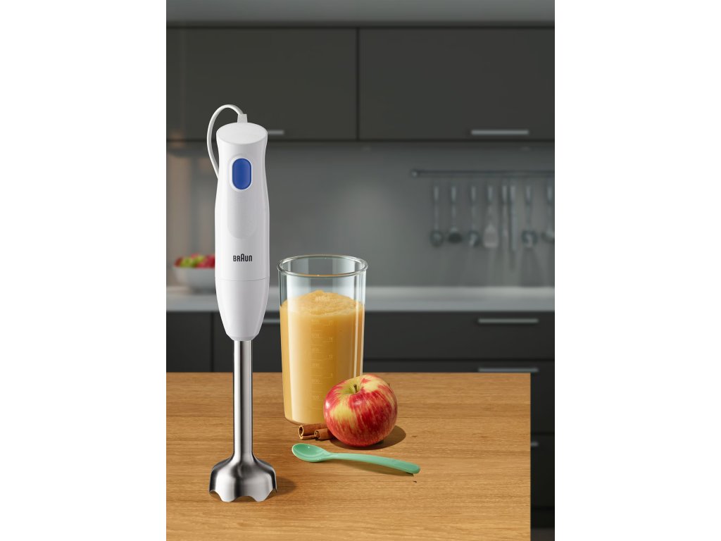Objevte novou jednoduchost lehkosti s nejlehčím tyčovým mixérem Braun. Jednorychlostní ovládací tlačítko je navrženo pro snadné mixování a je optimálně umístěno pro snadnou použitelnost. Jednoduše klikněte a podržte pro mixování smoothie, dezertů a lahodných omáček – s minimálním úsilím!