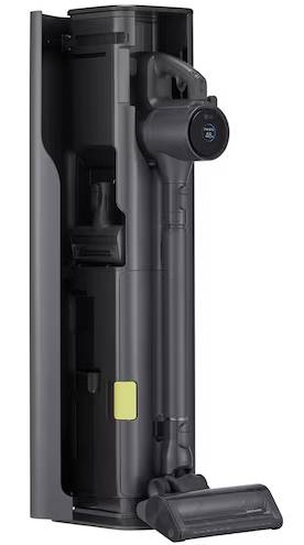Unikátním prvkem je technologie Kompressor™, která stlačí zachycenou prachovou náplň v nádržce, čímž prodlužuje interval vyprázdnění a zvyšuje komfort používání. Zároveň je součástí praktická stanice „All‑in‑One“, kam vysavač jednoduše vložíte — stanice probírá automatické vyprázdnění, dobíjení a také úhledné uložení příslušenství.