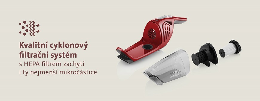 - Cyklónový filtrační systém zajistí lepší efektivitu vysávání