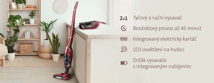 - Ruční a tyčový vysavač 2 v 1