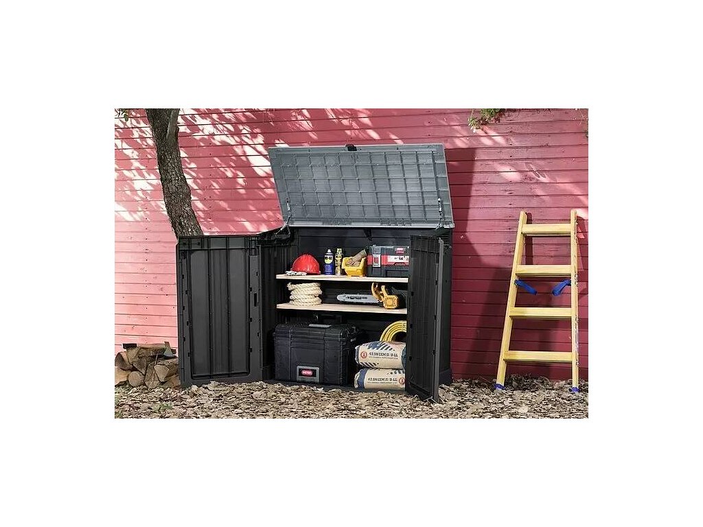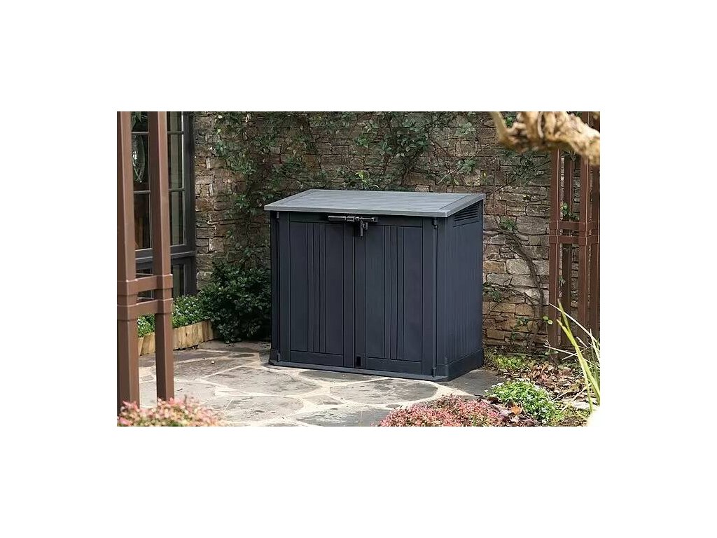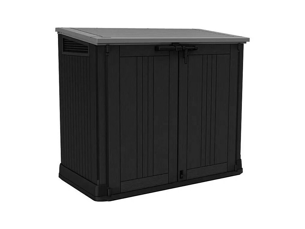 - Úložný box Keter / 132 x 71,5 x 113,5 cm / 120 l / plast / dvoje dveře / výklopné víko / sklon střechy 7° / polypropylen / antracitová/černá