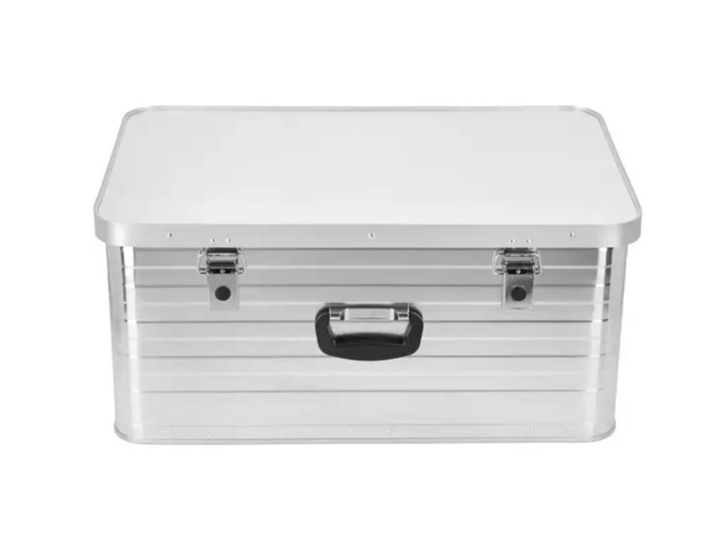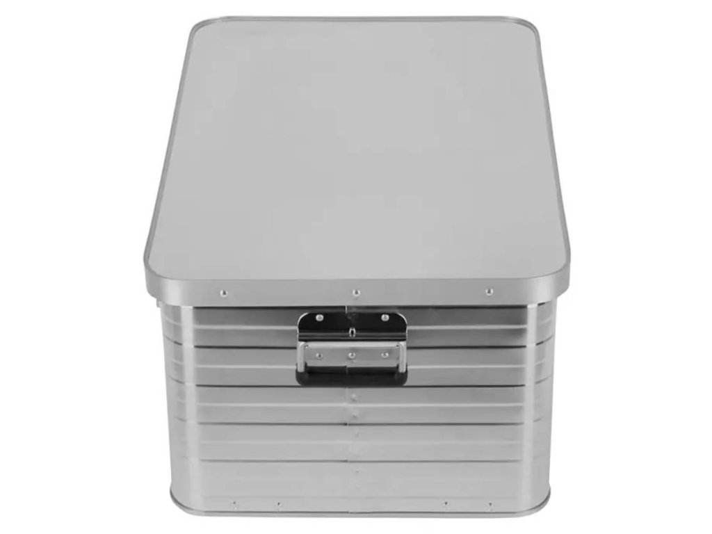 Úložný box Wisent s objemem 80 litrů je robustní a praktické řešení pro skladování a přepravu vašich věcí - ideální do dílny, garáže, auta nebo na cesty. Box je vyroben z lehkého, ale odolného hliníku ve stříbrném provedení, které zaručuje dlouhou životnost a odolnost vůči korozi. Díky svým rozměrům 45,5 x 32 x 69 cm nabízí dostatek úložného prostoru pro nářadí, dokumenty či vybavení a lze jej snadno přenášet nebo stohovat s dalšími boxy.