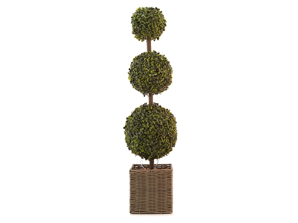 Vneste do svého domova či na terasu nádech elegance s tímto stylovým umělým stromkem v květináči. Jeho dokonale tvarované tělo tvoří tři zelené koule o průměrech 18 cm, 22 cm a 28 cm, které vytvářejí harmonický a moderní vzhled. Stromek stojí v pevném květináči o rozměrech 20×20×20 cm a s ním dosahuje výšky 100 cm – ideální velikost pro umístění u dveří, na terase nebo v interiéru. Jemné teplé osvětlení z integrovaného světelného řetězu s certifikací IP44 na 3× AA baterie dodá stromku útulnou atmosféru. Díky praktickému časovači se světla automaticky zapínají na 6 hodin a poté na 18 hodin vypínají. Dekorace je vhodná pro použití jak uvnitř, tak venku a rozzáří váš prostor po celý rok.
