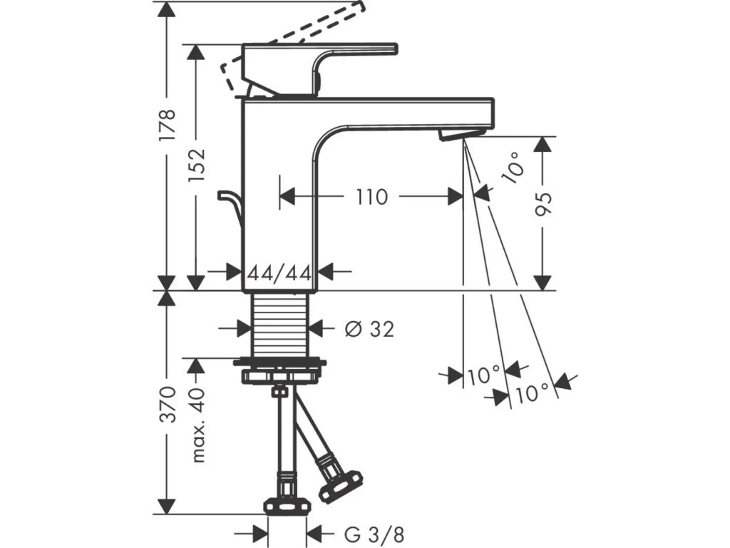 Baterie je vybavena robustní odtokovou soupravou s táhlem, kterou snadno ovládnete jednou rukou. Výška výtoku 95 mm a pohodlná ComfortZone 100 zaručují volný prostor u umyvadla. Výkyvný tvarovač proudu a normální proud vody zajišťují maximální komfort při každodenním používání.