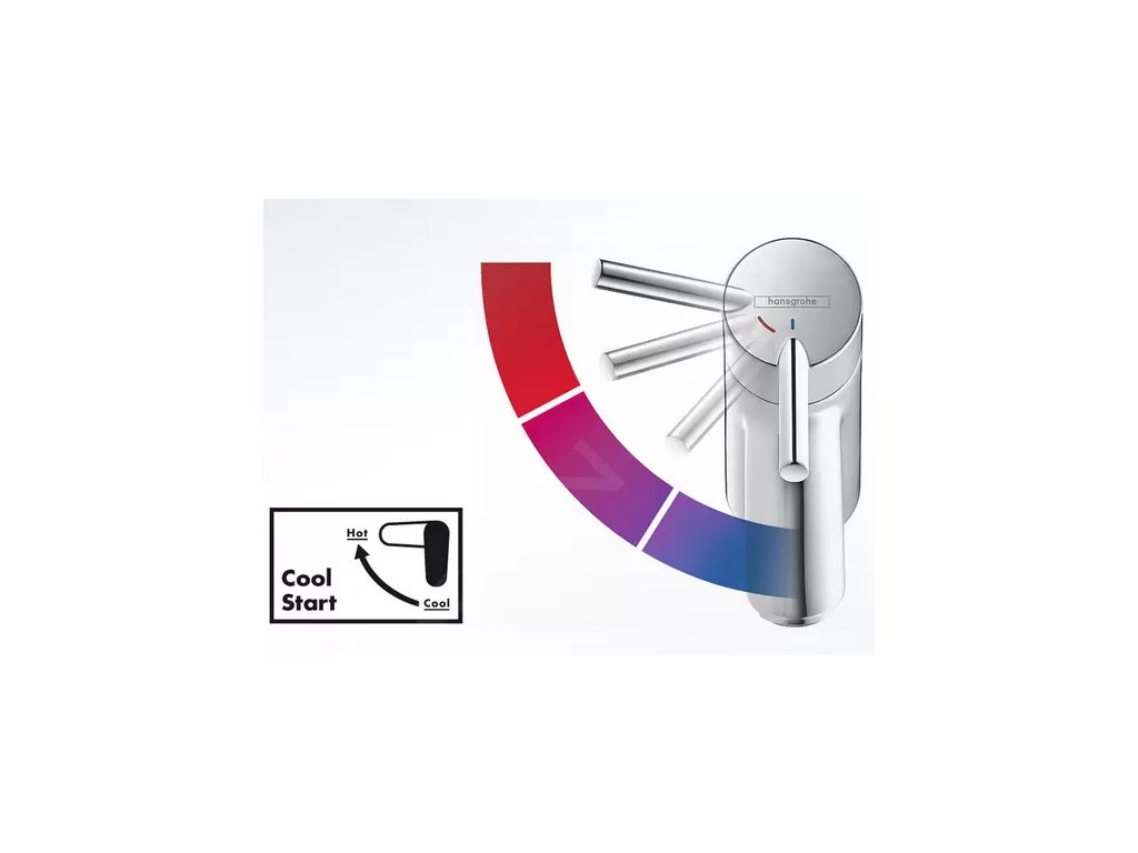 Umyvadlová baterie Hansgrohe Vernis Shape zaujme kombinací elegantních křivek a hran, která perfektně doplní moderní koupelny. Funkce CoolStart zajišťuje, že při střední poloze páky teče pouze studená voda – teplou vodu spustíte cíleně otočením páky doleva. Tento systém šetří energii i peníze a zároveň je šetrný k životnímu prostředí.