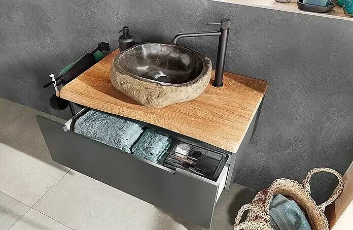 Umyvadlová deska o rozměrech (Š x H x V) 80,3 x 48 x 3,8 cm svým elegantním vzhledem odpovídá nadčasovému duchu doby.