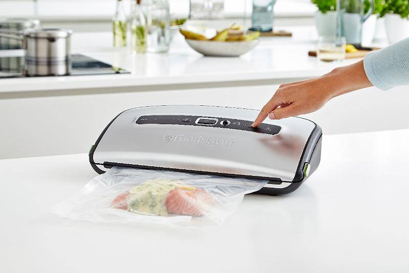 Udržet potraviny dlouhodobě čerstvé a chutné vám pomůže zajistit domácí svářečka fólií FoodSaver FFS016X FoodSaver ve stylovém stříbrném provedení. Hlavní její funkce je vakuování a zatavení potravin v originálních drážkových fóliích, navíc je zcela kompatibilní s vakuovacími dózami, marinátorem a zátkami na lahve FoodSaver. Takto ošetřené potraviny vám vydrží v mrazničce 2-3 roky, v chladničce pak několik týdnů.