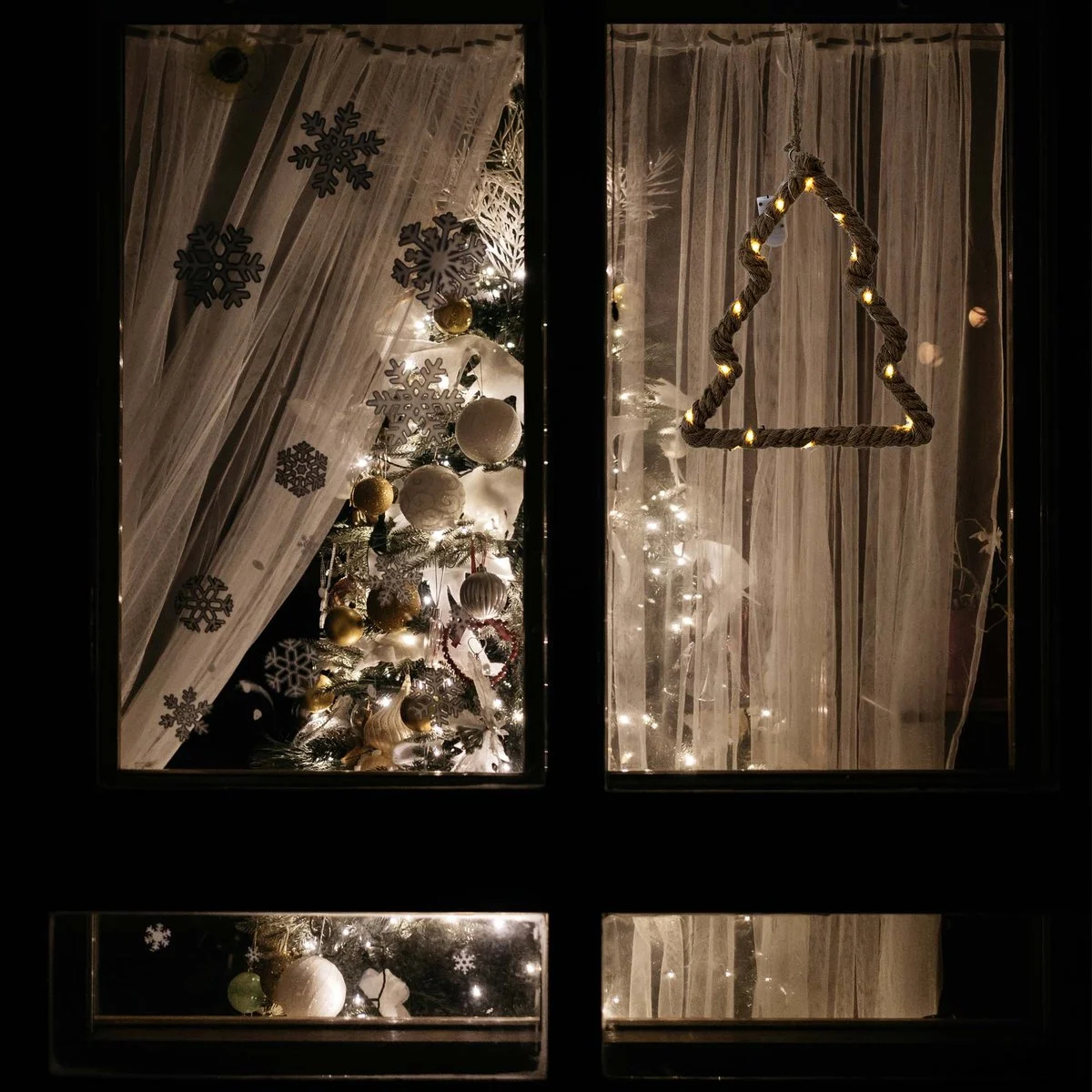 Rozsviťte svůj domov kouzelným světlem s touto LED závěsnou dekorací. Kombinace pevné jutové šňůry a kovového drátu vytváří přírodní a elegantní vzhled, který krásně doplní váš vánoční interiér. Teple bílé LED diody dodají prostoru příjemné, hřejivé světlo a navodí sváteční atmosféru. Díky praktickému závěsnému provedení lze dekoraci snadno umístit na stěnu, dveře nebo okno. Je napájena 2 bateriemi CR2032, takže ji můžete zavěsit kamkoli bez nutnosti připojení do zásuvky.