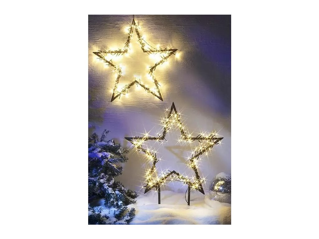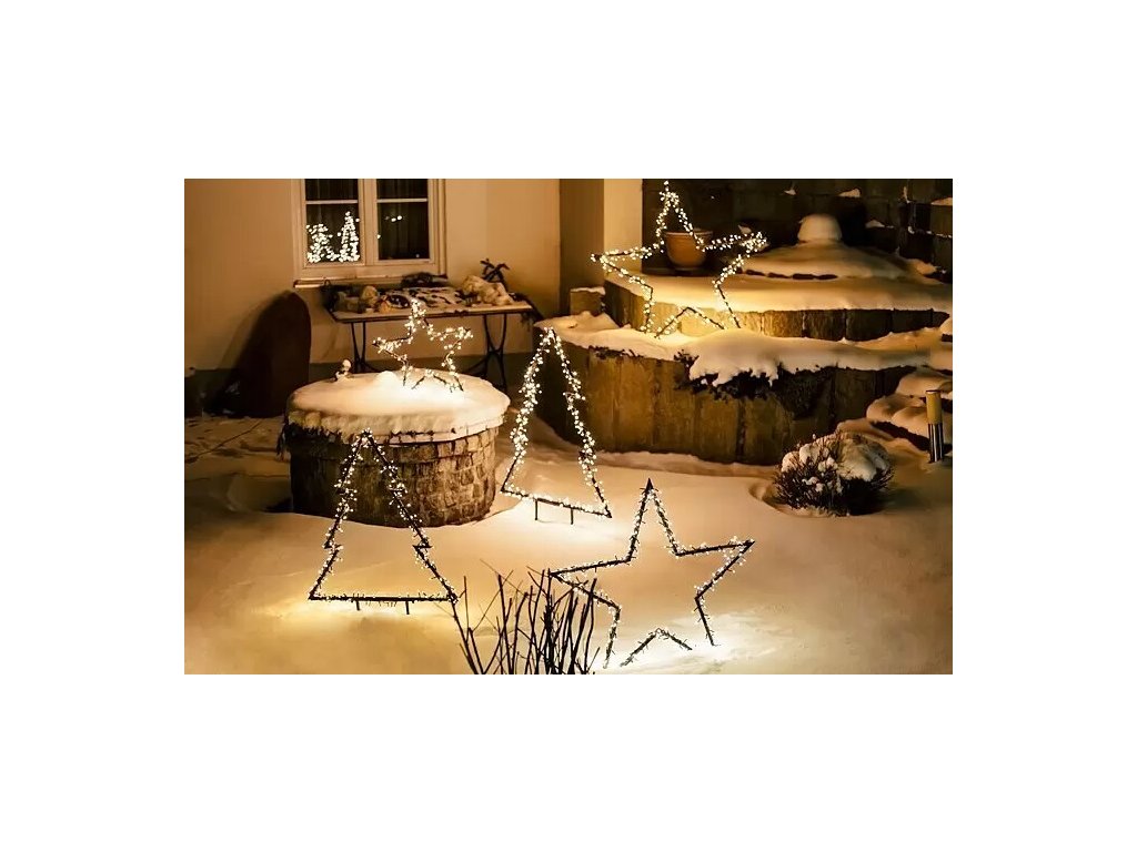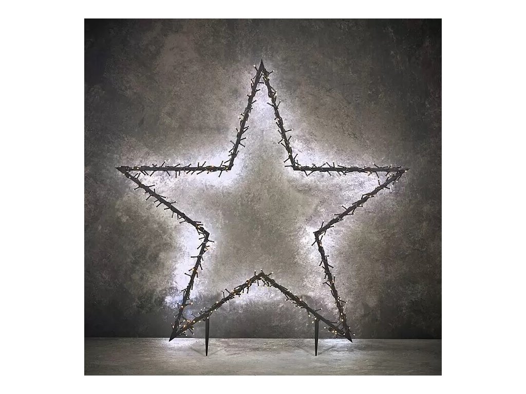 Vánoční dekorace ve tvaru hvězdy je vybavena řetězem s LED osvětlením. Díky stupni krytí IP44 je chráněná proti stříkající vodě a je tak vhodná na venkovní použití. LED světelný řetěz vyzařuje teplou bílou barvu světla, jenž vám na zahradě vytvoří nádhernou scenérii. Časovačem umožňuje nastavení osvětlení. Rám je připevněn zasunutím do země, což znamená, že není nutná žádná náročná montáž.