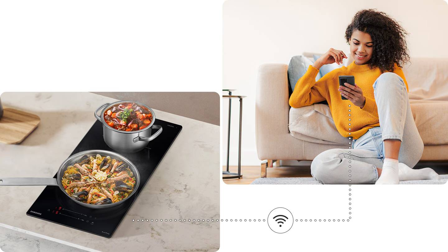 Varnou desku můžete spustit i ovládat téměř odkudkoli prostřednictvím chytrého telefonu či tabletu prostřednictvím aplikace SmartThings. Mnoho věcí lze provádět také hlasovými příkazy (např. Samsung Bixby, Amazon Alexa, Google Assistant).