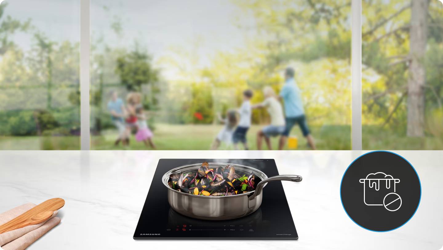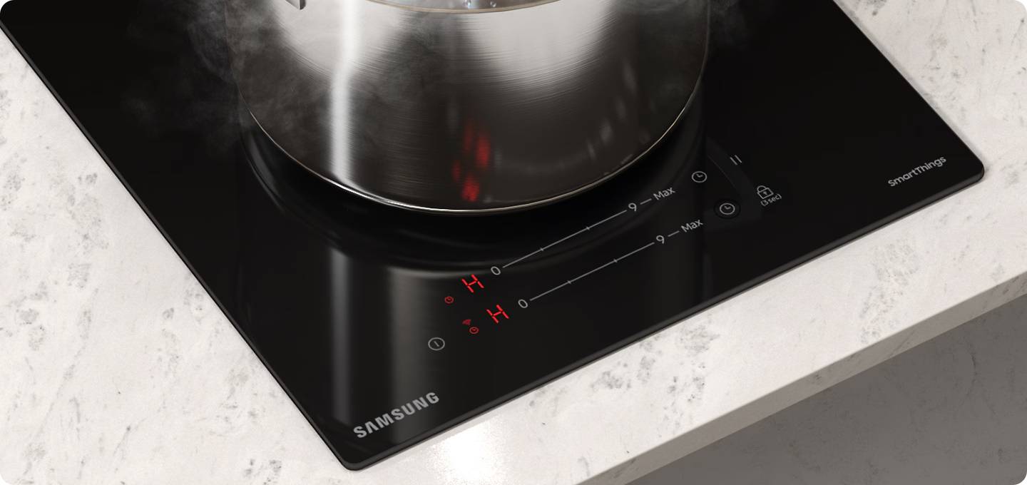 Vestavná indukční varná deska Samsung NZ32BG2005FKU1 nabízí jednoduché a intuitivní ovládání varné desky posouváním prstem (posouváním) a přesné, přímé ovládání 9 úrovní výkonu.