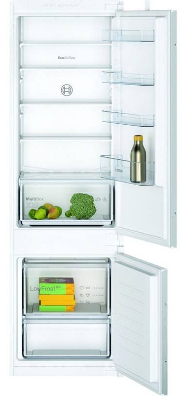 Vestavná chladnička Bosch Serie 2 | KIV87NSF0 vám pomůže udržet vaše potraviny déle čerstvé. Měří 177,2 cm, chladicí oddíl nabízí velký prostor o objemu 200 litrů. Ve spodní části se nachází mrazák s objemem 70 litrů. Teplotu v každé sekci lze regulovat samostatně. Systém chladniček LowFrost zaručuje snadnější a méně častější odmrazování. Tím vám ušetří velkou část práce a energie.