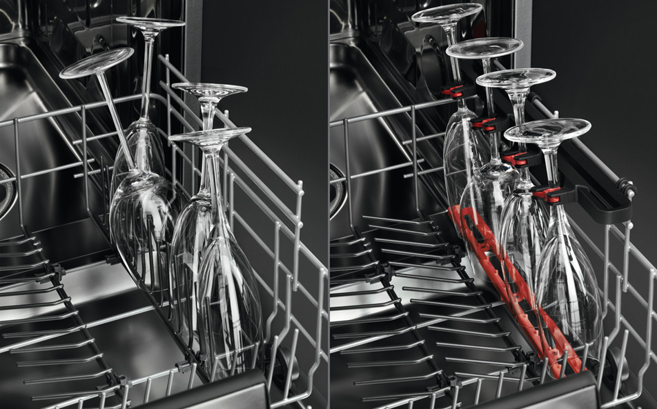 O křehké nádobí bude postaráno s maximální péčí. Držáky SoftGrips a SoftSpikes jsou navrženy tak, aby křehké skleněné nádobí bezpečně drželo na svém místě a nepoškodilo se.
