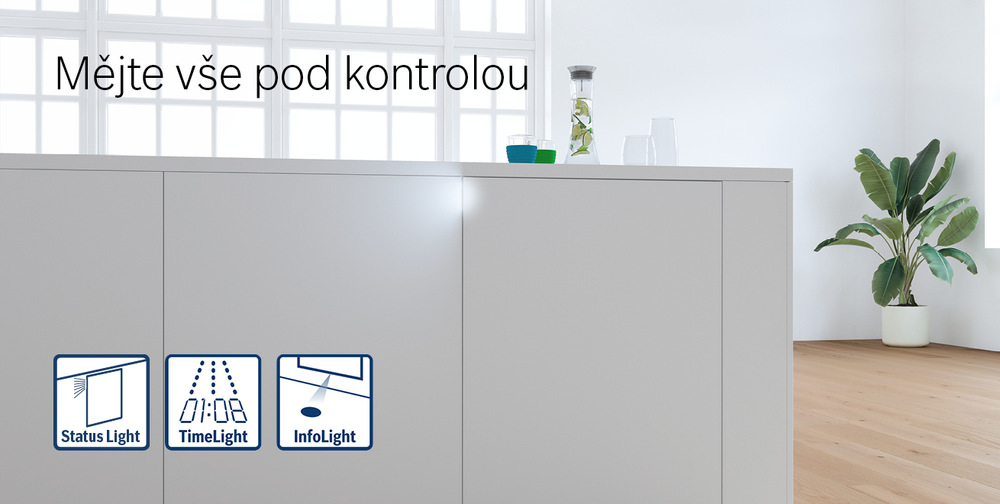 U myčky, která nemá přední panel, je těžké na první pohled zjistit, zda ještě myje. Díky světelné signalizaci vás myčka sama upozorní, kdy už mycí proces skončil nebo jestli stále ještě probíhá.
