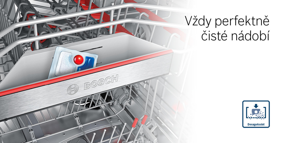 Dávkovací asistent zaručuje vysoce účinné mytí nádobí. Mycí tableta se přesune ze zásobníku přímo do malé záchytné misky. Cílený proud vody tabletu stejnoměrně rozpustí po celém vnitřku myčky, tím dosáhnete vždy výborného výsledku mytí.