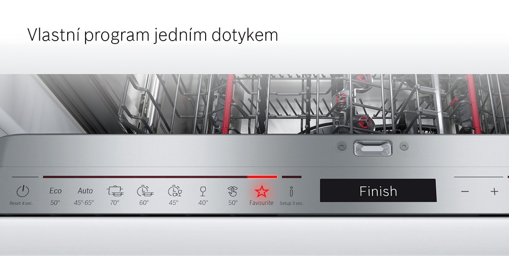 Získejte maximum z vaší chytré myčky nádobí a zjednodušte si váš každodenní život jedním dotykem. Pomocí funkce Oblíbený program si můžete snadno uložit kombinaci vašeho nejpoužívanějšího programu a přídavné funkce. Naprogramované nastavení pak jednoduše spustíte pomocí aplikace Home Connect nebo na ovládacím panelu myčky.