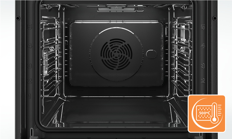 Odhalte extrémně účinný způsob, jak odstranit i ty nejodolnější nečistoty uvnitř trouby a navrátit jí někdejší lesk. Zapněte program pyrolytického čištění a nechte troubu zahřát přibližně na 500 °C, kdy se nečistoty promění ve snadno odstranitelný popel.