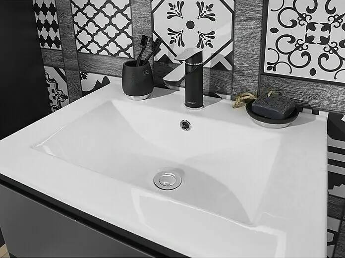 Umyvadlo tvoří harmonický celek s ladící skříňkou pod umyvadlo. Keramické umyvadlo přesvědčí pevným a snadno čistitelným povrchem a vysokou odolností. Navíc je již vybaven děrovaným otvorem pro baterii a přepadovým otvorem. Se spodní skříňkou, vysokou skříňkou a osvětleným zrcadlem, které nejsou součástí dodávky, můžete vytvořit harmonický celkový obraz. Dodáváno bez kohoutku a vypouštěcího ventilu.