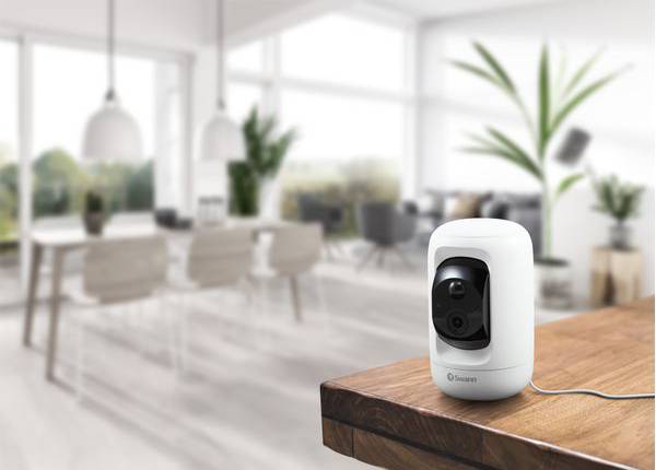 Sledujte svůj domov s vnitřní bezpečnostní kamerou Swann SWIFI-PTCAM232GB-EU. Ideální pro nájemní byty, není třeba vrtat žádné otvory do zdi. Stačí zapojit kameru a umístit ji na jakýkoli rovný povrch.