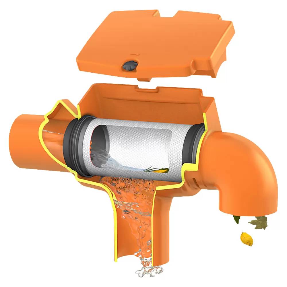 S velmi jemnou síťkou 0,5 mm a robustním plastovým tělem filtr účinně předčistí dešťovou vodu ze střech až do 350 m². Připojení DN 100 zajišťuje kompatibilitu s běžnými instalačními rozměry. Použití filtru zvyšuje kvalitu vody v nádrži, snižuje množství nečistot a tím i opotřebení čerpadla či dalších mechanických částí systému.