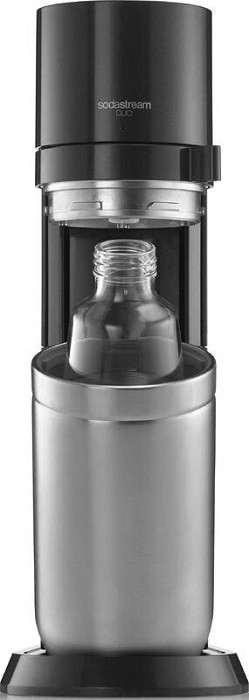SodaStream Duo Black je nový výrobník sodové vody s revoluční technologií, který umožňuje používat skleněnou i plastovou láhev. Na první pohled vás zaujme jeho design, za který získal prestižní ocenění Red Dot Award. Oblé tělo s unikátním nerezovým výklopným držákem na lahve se ve vaší kuchyni bude zaručeně vyjímat. Bublinky se vytvoří mechanickým stlačením tlačítka, takže není potřeba elektrické energie nebo jiný zdroj napájení.