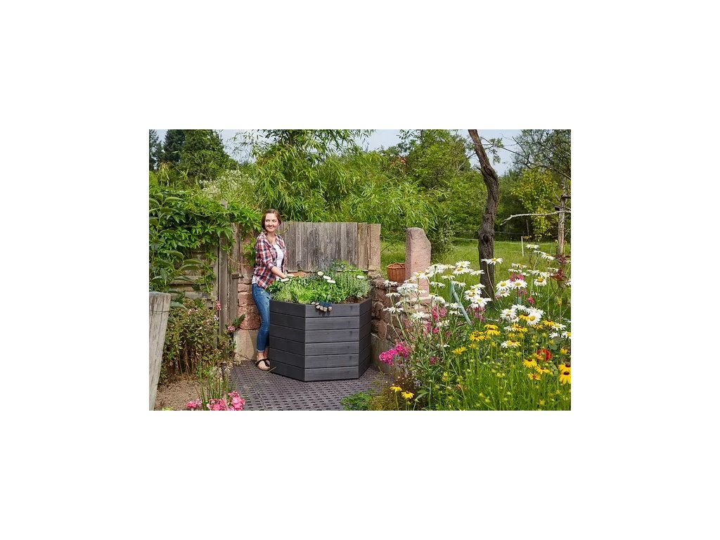 Vysoký záhon Ergo Wood L od značky Garantia umožňuje ergonomickou práci v pohodlné výšce a lze jej kdykoliv flexibilně rozšířit. Vyvýšený záhon je navržen jako modulární a umožňuje vám jej nastavit tak, aby vyhovovala vašim potřebám a prostoru. Tato kompletní sada se skládá z 6 panelů, které lze snadno a bez nářadí spojovat pomocí spojek. Design a možnosti kombinací jsou individuální , stejně jako základní konstrukce a výška vašeho vyvýšeného záhonu. Na rozdíl od vysokých záhonů ze dřeva, nemusí být tento zevnitř natřen nebo vyložen drahou fólií. Jeho naplnění kompostem a zahradní zeminou vytváří ideální živnou půdu pro pěstování rostlin.