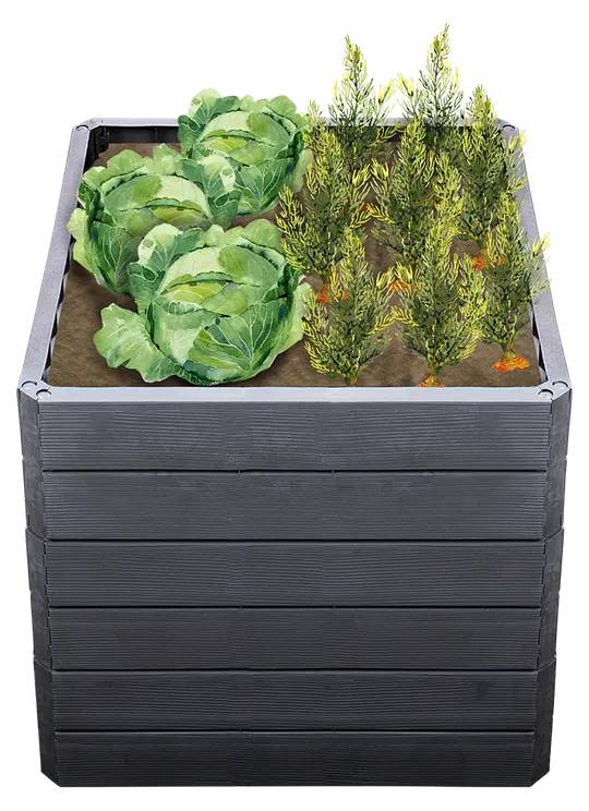 Záhon zaujme moderním vzhledem s 3D imitací dřeva, atraktivními barvami, dlouhou životností a UV stabilitou. Kromě klasického využití jako záhon může sloužit i jako kompostér nebo prostor pro pěstování bylinek. Díky vyplnění kompostem a zahradní zeminou vytváří ideální podmínky pro růst rostlin. Vysoký záhon také zajišťuje optimální klimatické podmínky, což umožňuje rostlinám rychlejší růst i bez ohledu na půdní podmínky ve vaší zahradě. Díky vhodné pracovní výšce je práce s ním velmi pohodlná.