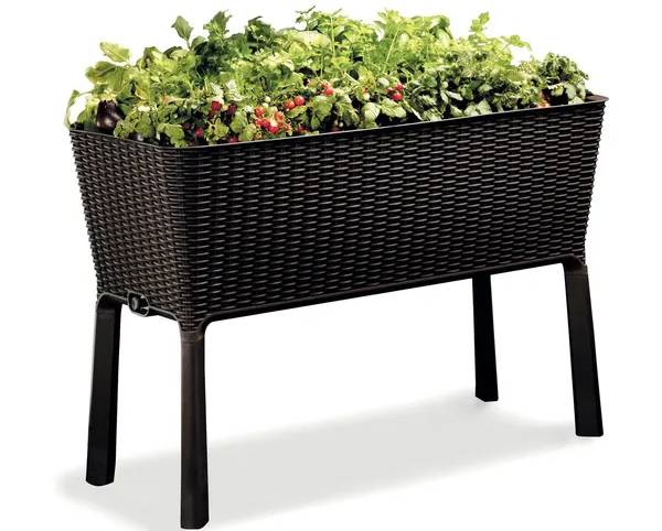 Vyvýšený záhon Keter Easy Grow je praktickým řešením pro pěstování bylinek, zeleniny i drobných okrasných rostlin na zahradě, terase nebo balkoně. Díky vyvýšené konstrukci umožňuje pohodlnou práci bez nutnosti ohýbání, což ocení zejména při každodenní péči o rostliny. Moderní design zároveň snadno zapadne do jakéhokoliv venkovního prostoru.