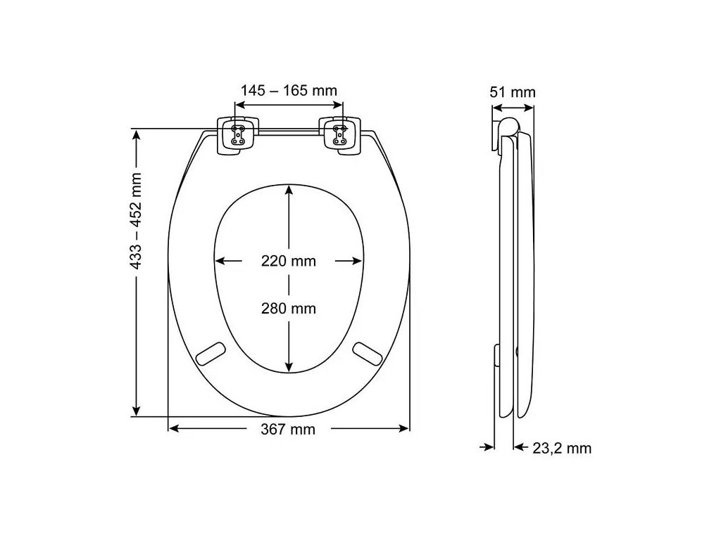 - vzdálenost pantu toaletního sedátka 8 - 17 cm
