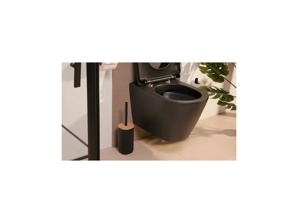 WC souprava Venus Katta je elegantní koupelnový doplněk, který spojuje moderní design s praktickým využitím. Díky rozměrům Ø 10 x 20,6 cm se snadno vejde i do menších prostor, aniž by ztrácela na funkčnosti. Kvalitní polyresin zajišťuje vysokou odolnost a dlouhou životnost, zatímco černé provedení dodává soupravě nadčasový a stylový vzhled. Skvěle doplní každou moderní toaletu či koupelnu.