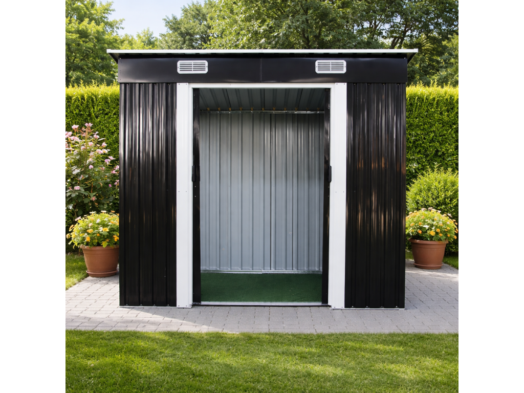 Chybí vám na zahradě místo, kam bezpečně uložit nářadí, techniku i sezónní vybavení? Spolehněte se na kovový zahradní domek s pultovou střechou, který nabízí kompaktní rozměry, pevnou ocelovou konstrukci a praktické posuvné dveře pro pohodlný přístup.